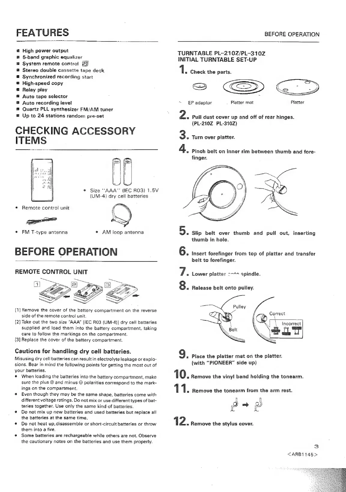 Pioneer RX-310 - Before Operation; Remote Control Unit