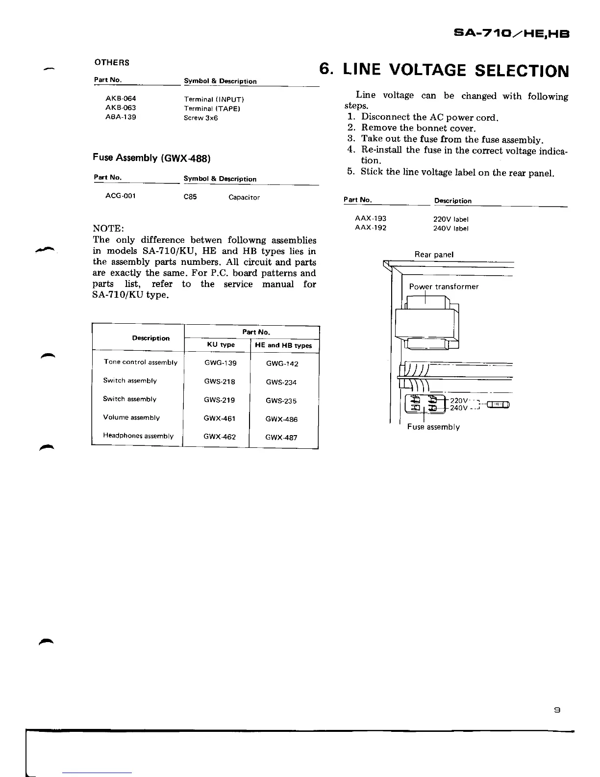 Pioneer SA-710 - Line Voltage Selection; Line Voltage Selection Procedure; Voltage Labels