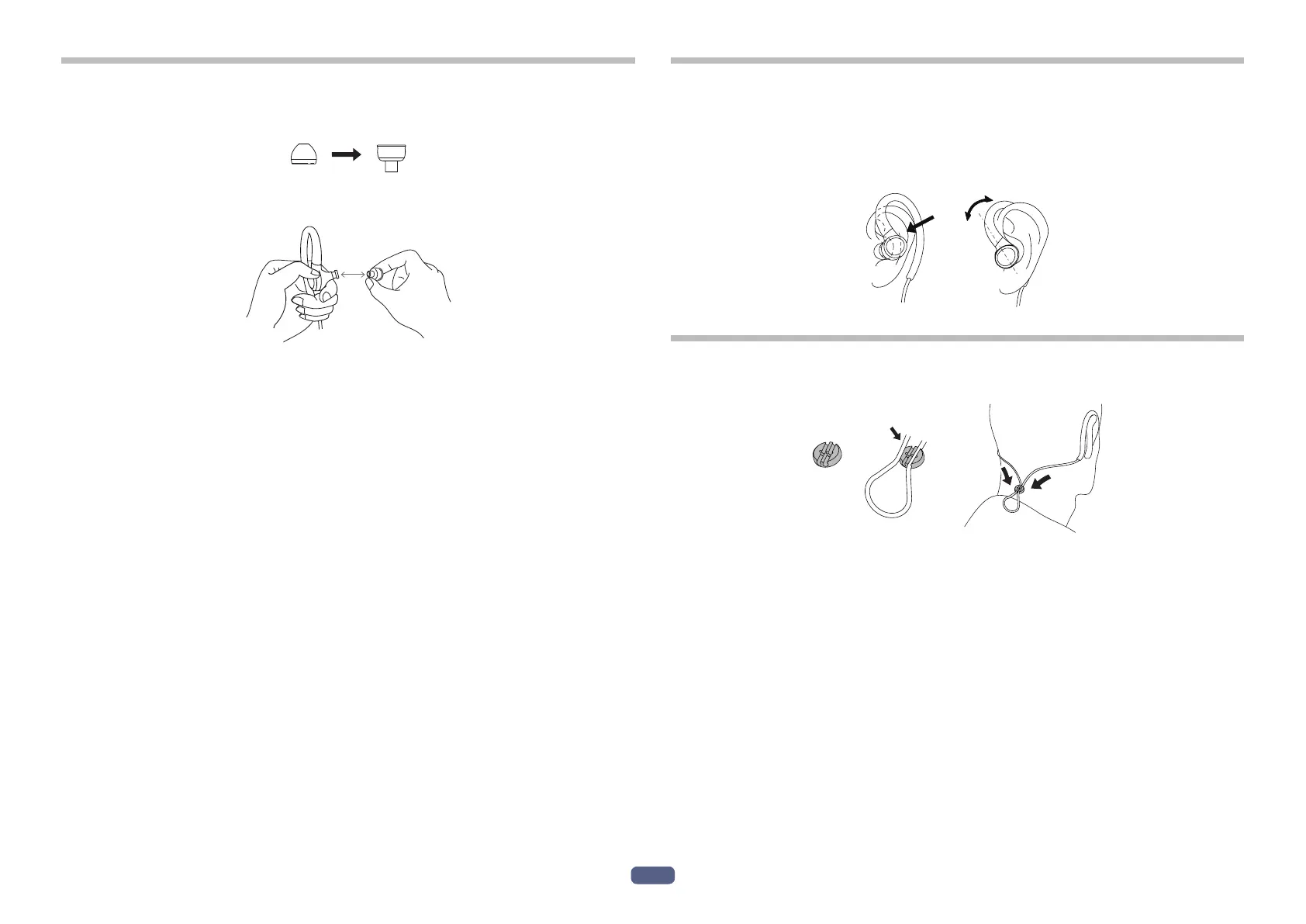 (1) Plasser øreproppen i ørekanalen, og juster ørefestet over øret.