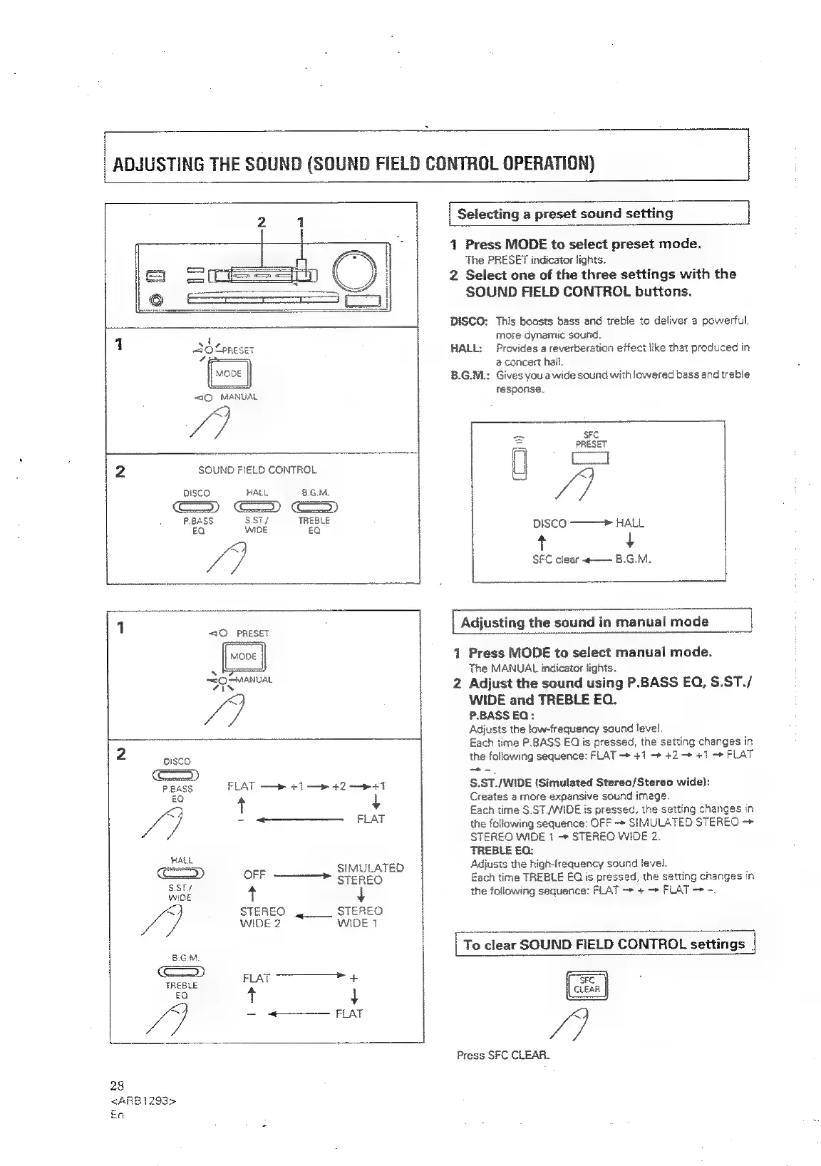 Pioneer XR-P310 - SOUND ADJUSTMENT; Preset Sound Field Settings; Manual Sound Adjustment; Resetting Sound Settings