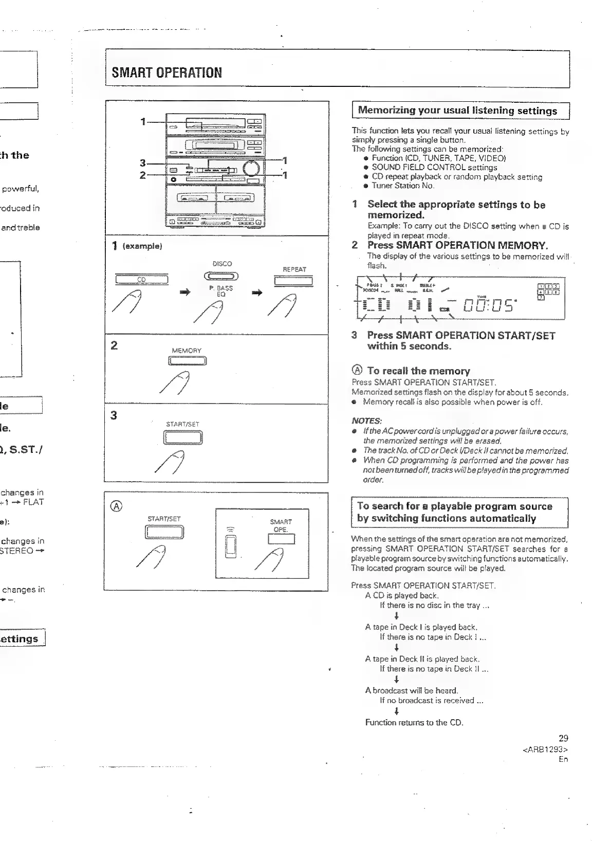 Pioneer XR-P310 - SMART OPERATION FEATURES; Memorizing Listening Preferences; Recalling Saved Settings; Automatic Program Source Search
