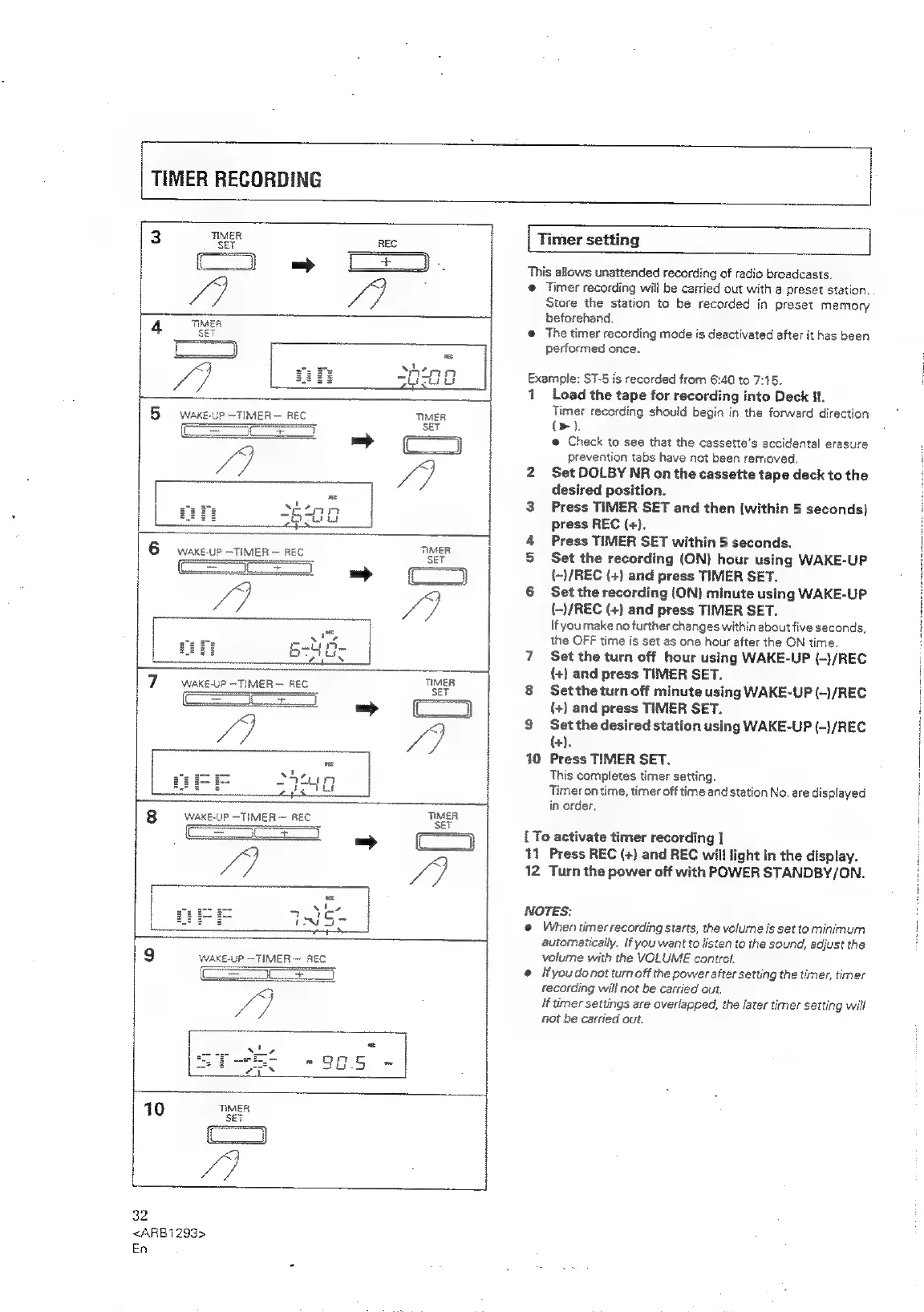 Pioneer XR-P310 - TIMER RECORDING; Setting Up Timer Recording; Activating Timer Recording