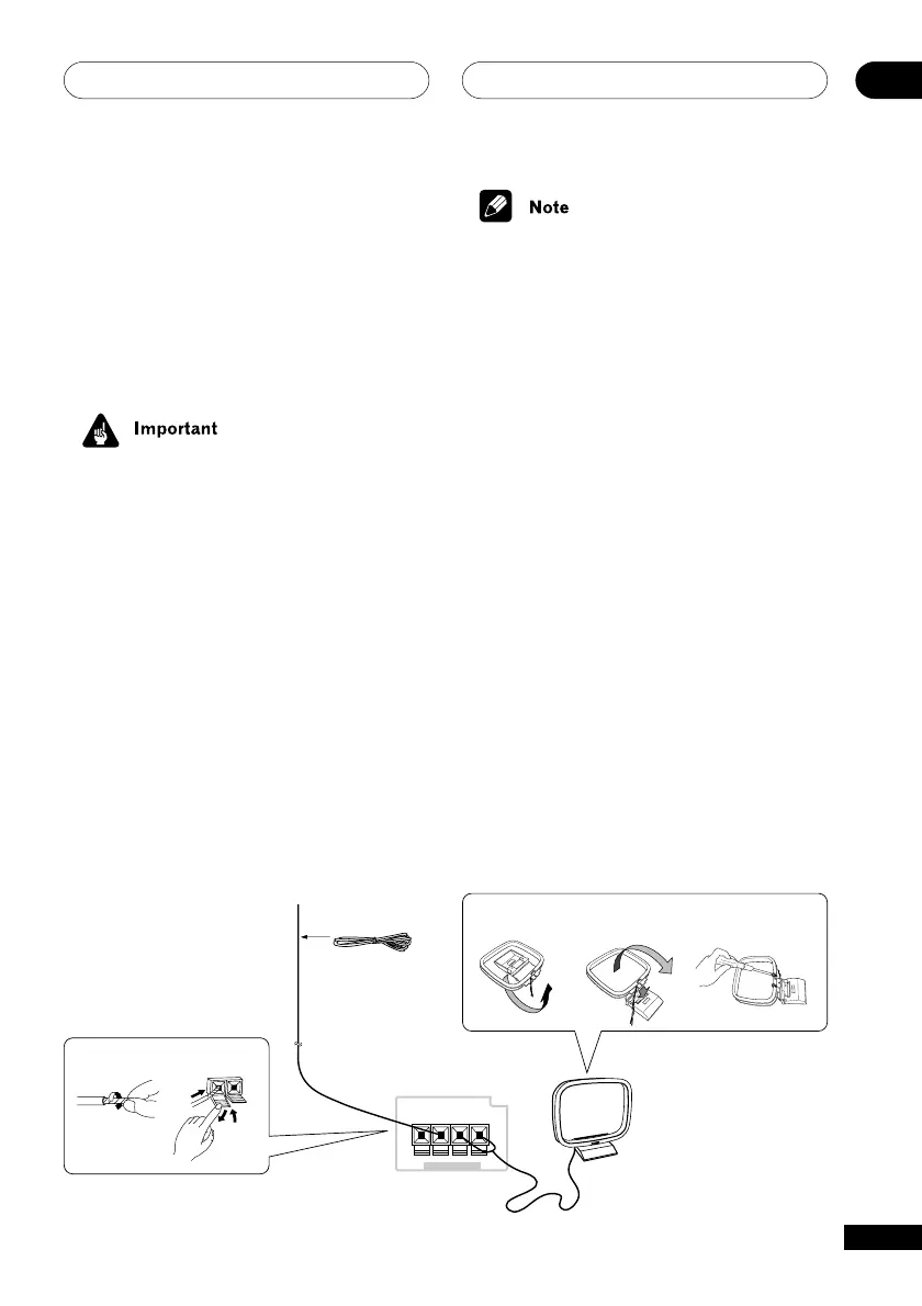 6 Connect the FM wire antenna in the