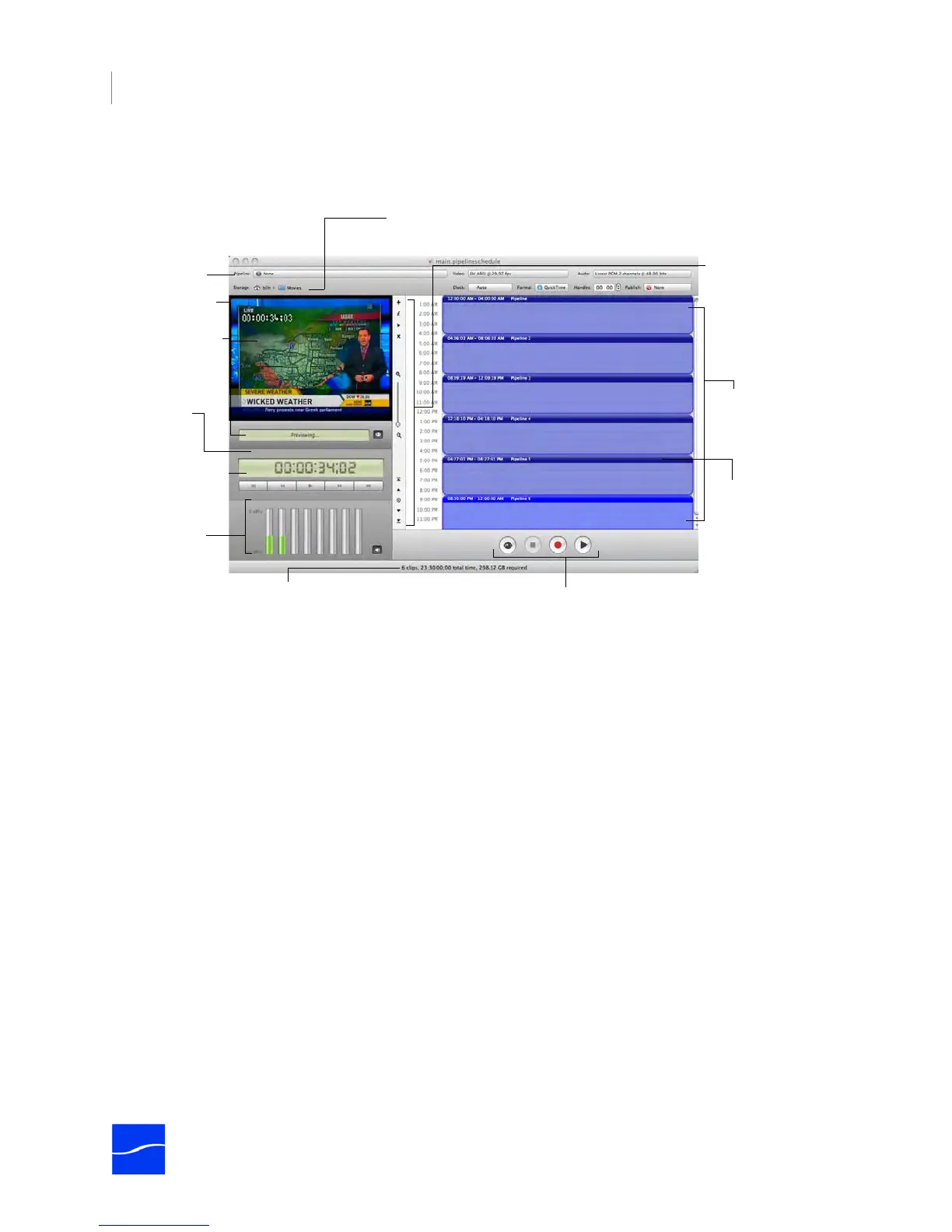 tasks, or to create schedules to capture or play out clips. Each panel, toolbar, and feature is described