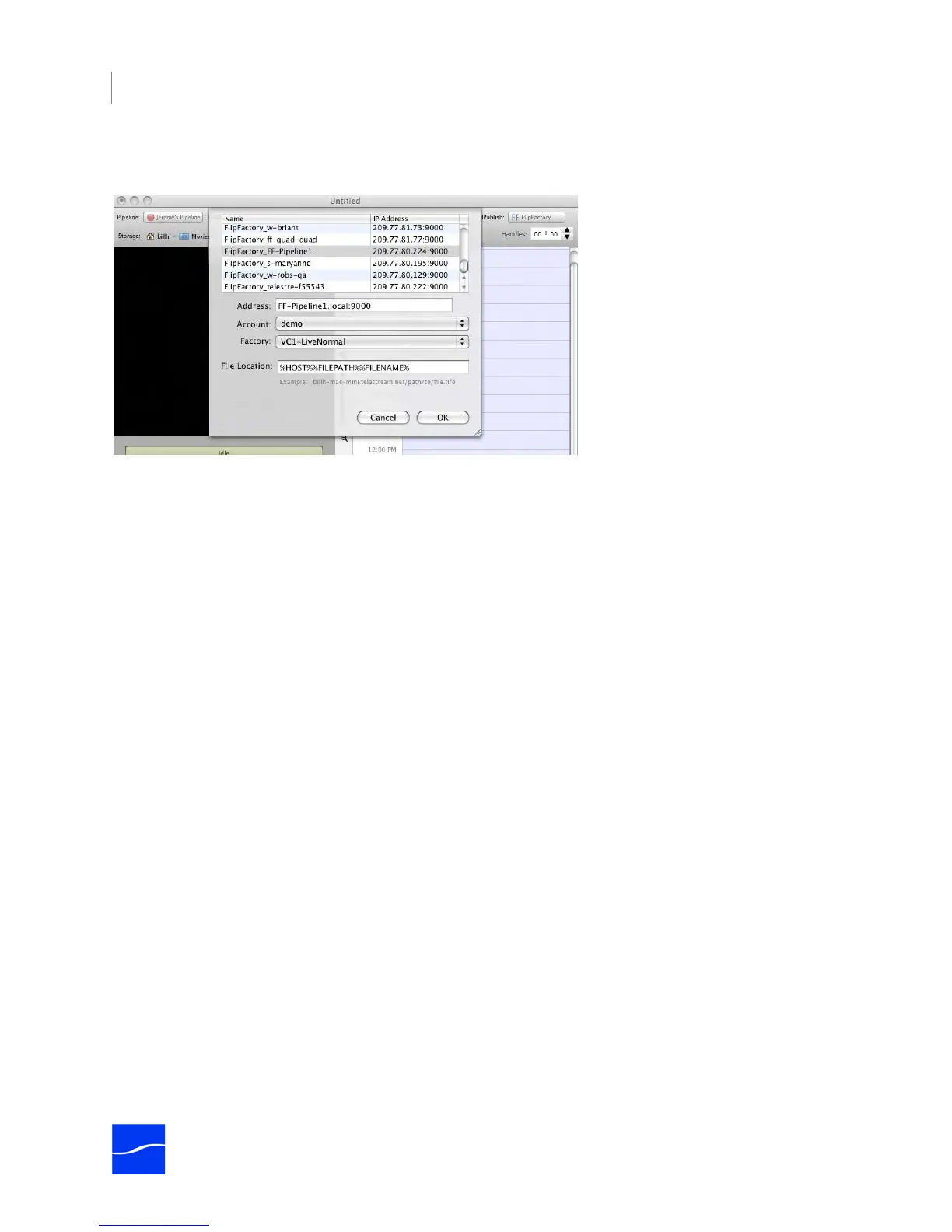 Location window and the FlipFactory Publisher will connect to the FlipFactory database to obtain the