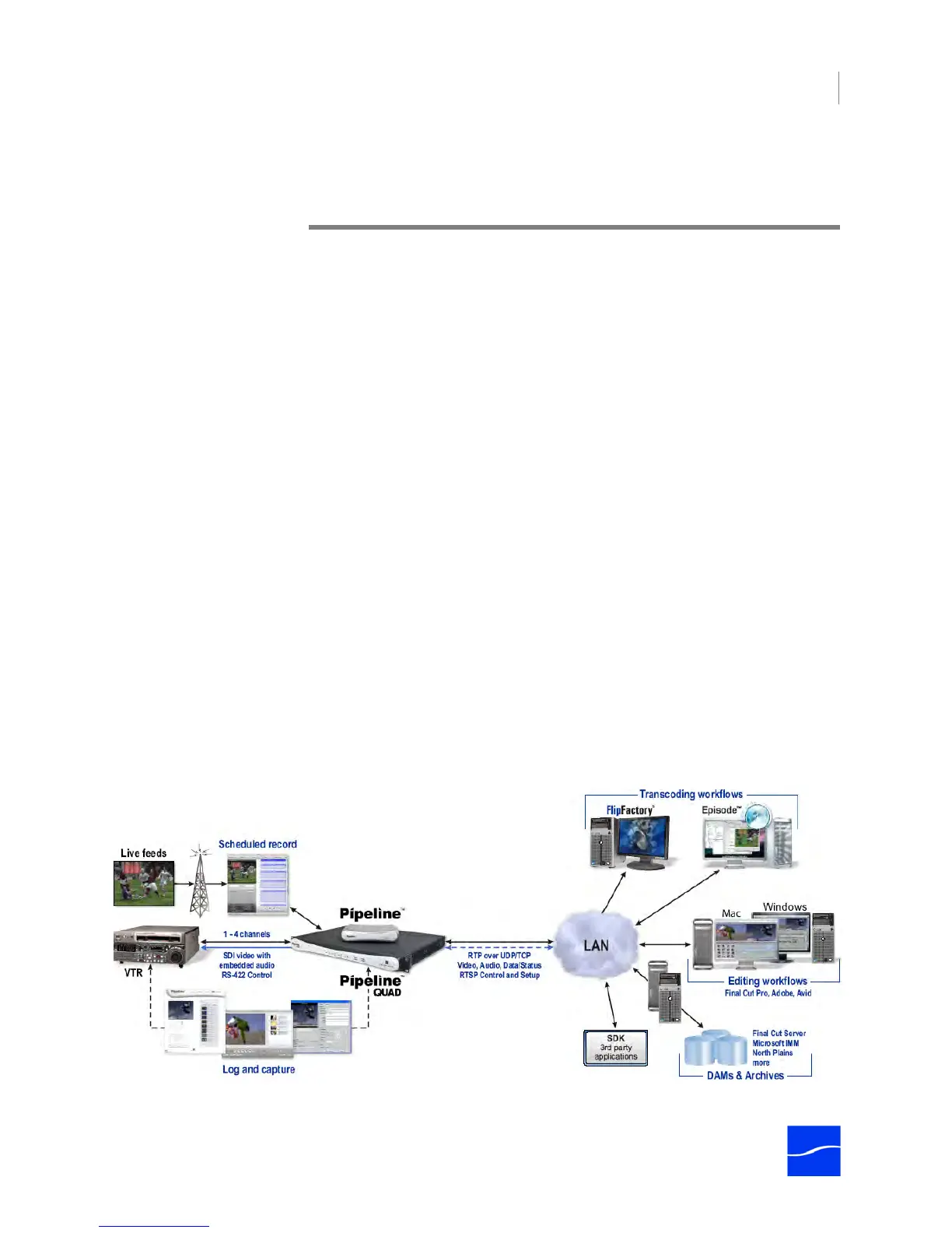 and decoding hardware accessory. Pipeline systems provide real-time SD and HD SDI ingest and