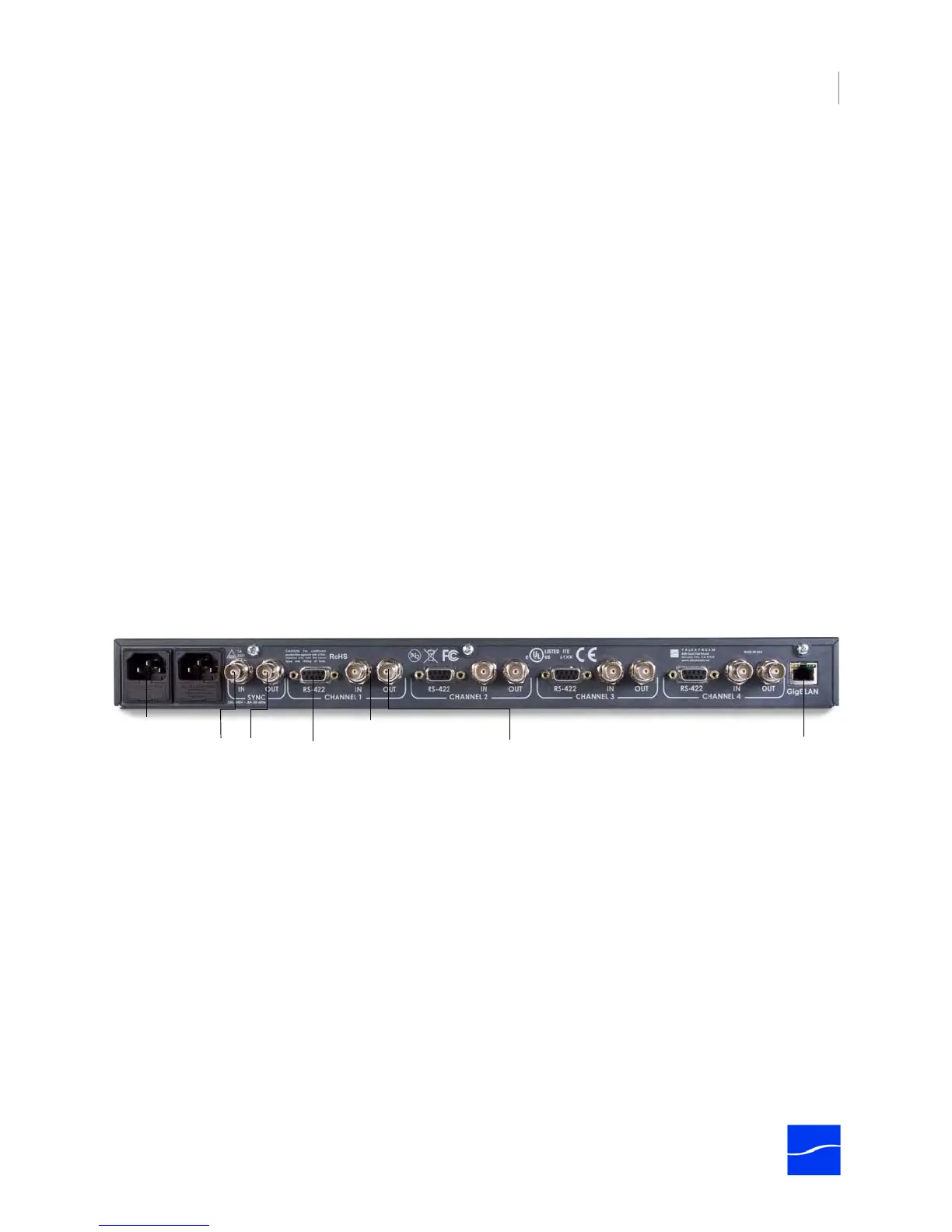 SDI In. One per channel. Lights green when the Pipeline is configured to encode SDI In and send it out via