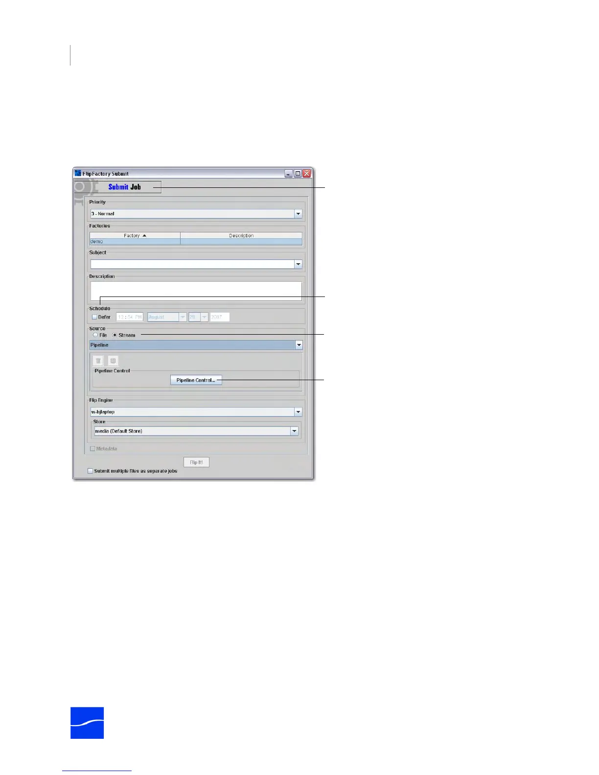 1. Log on to the FlipFactory console and click Submit Job to display the Submit Job window (above).