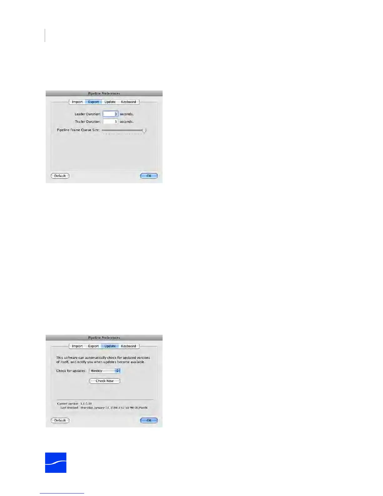In the Pipeline Preferences dialog, click Export to display the Export panel: