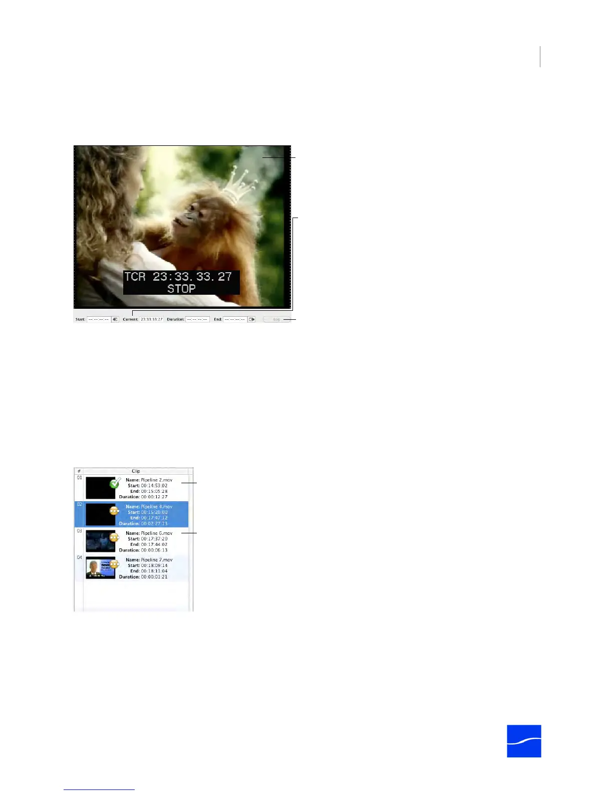 you can click Log to add the clip to the list. Optionally, enter a start timecode and a duration – the end