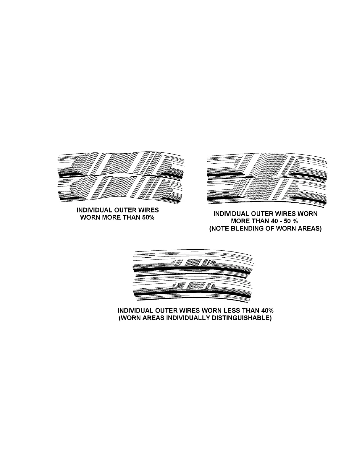 cables when individual wires in each strand appear to blend together (outer wires worn 40-50