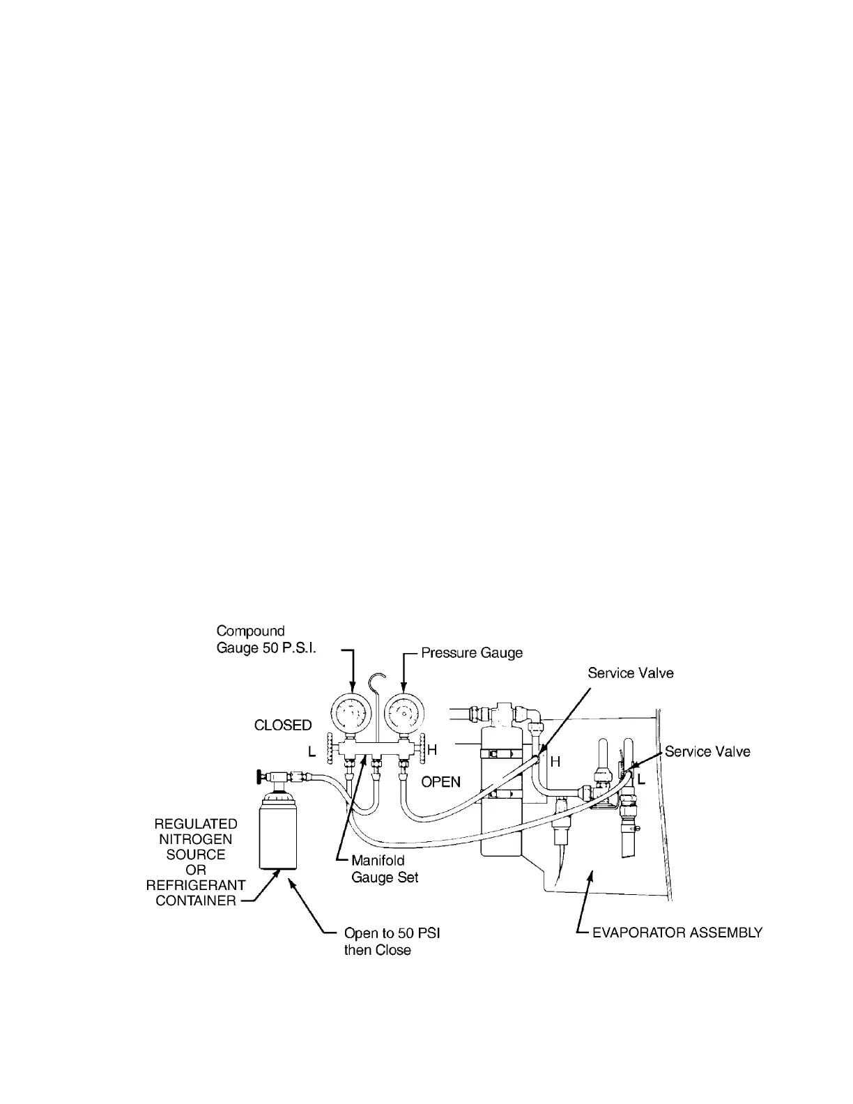 (c) Open nitrogen source or refrigerant container service valve.