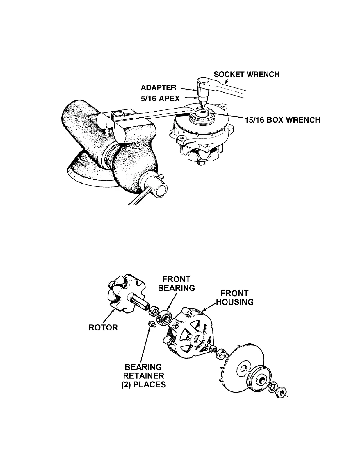 (i) Separate rotor, fan and pulley from the front housing by removing hex nut. A special tool,
