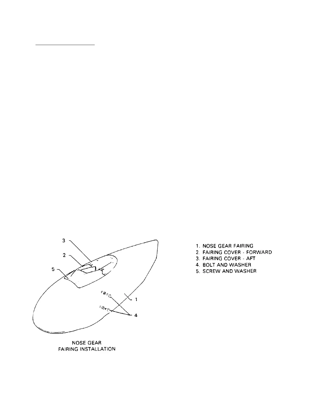 (1) Remove the four bolts (two on each side) securing the nose gear fairing to the strut assembly.