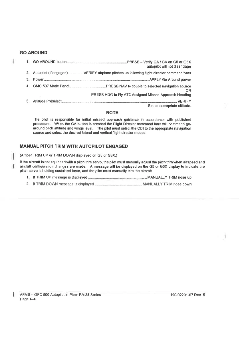 Piper ARCHER II - GO AROUND; MANUAL PITCH TRIM WITH AUTOPILOT ENGAGED