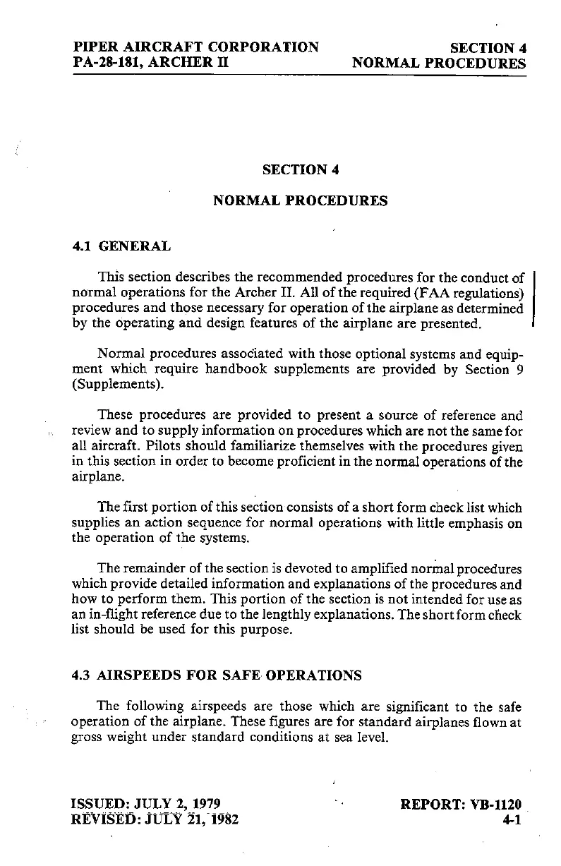 Piper ARCHER II - Airspeeds for Safe Operations