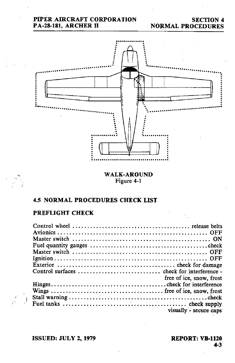 Piper ARCHER II - Normal Procedures Check List; Preflight Check