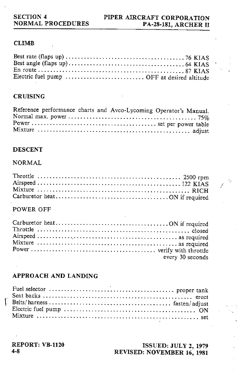 Piper ARCHER II - Climb; Cruising; Descent; Approach and Landing