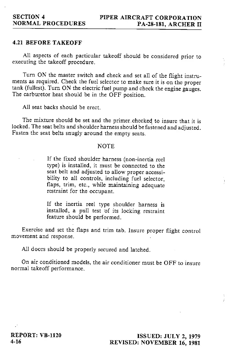 Piper ARCHER II - Before Takeoff