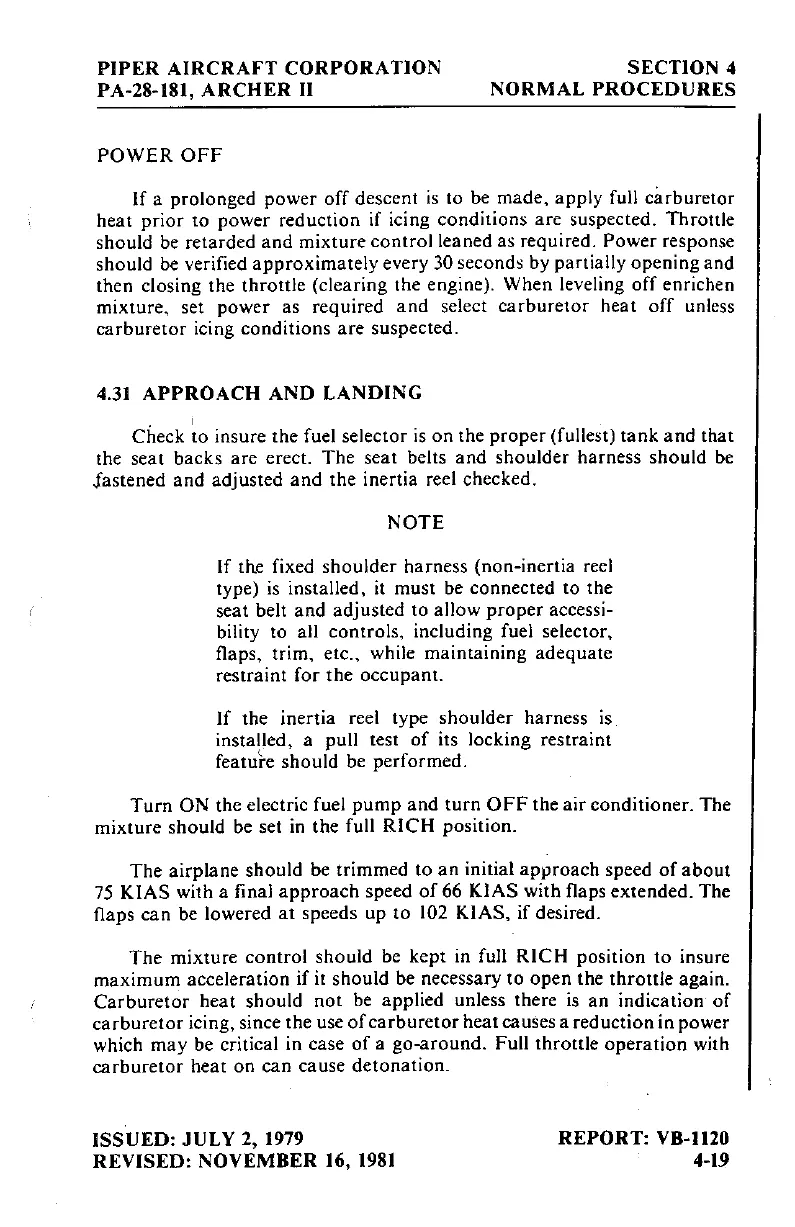 Piper ARCHER II - Approach and Landing