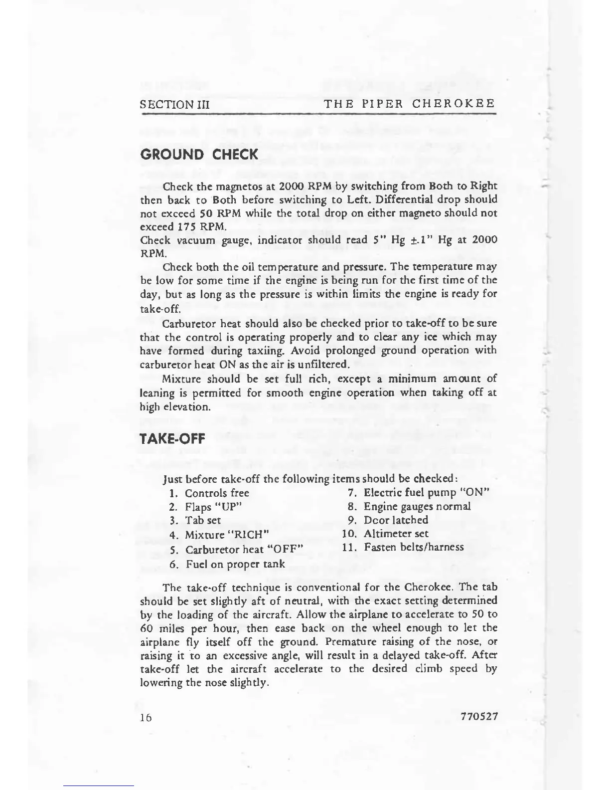Piper Cherokee 140 - Ground Check Procedures; Take-off Techniques