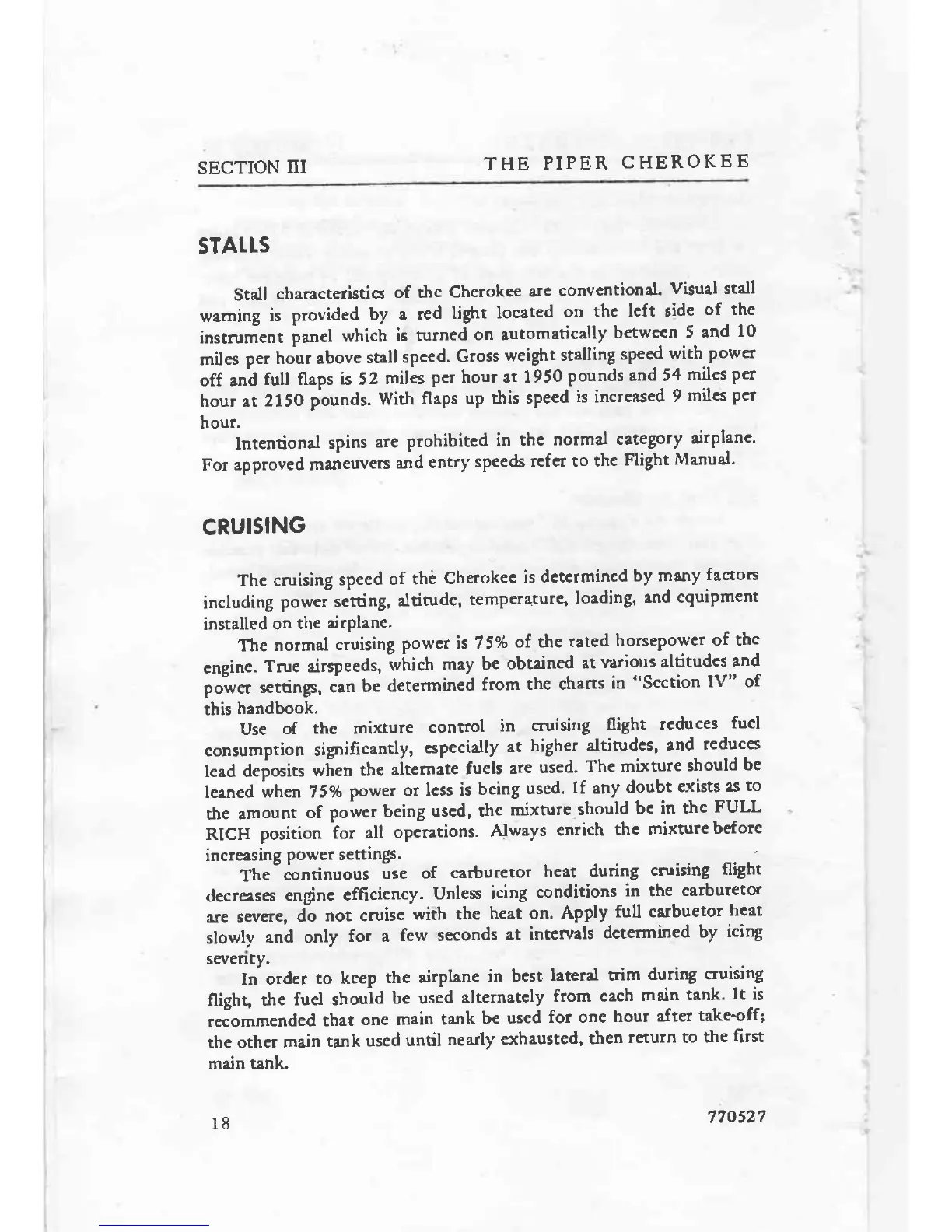 Piper Cherokee 140 - Stall Characteristics; Cruising Flight Operations