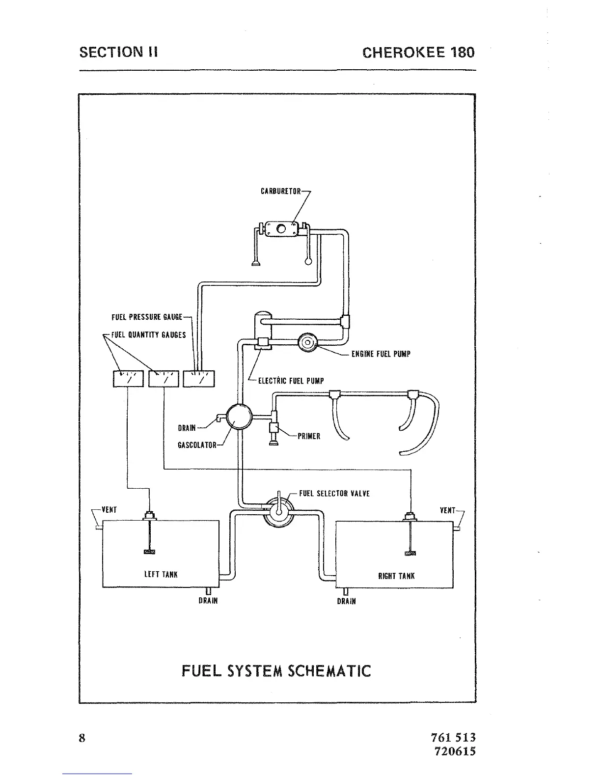 Piper CHEROKEE 180 - Fuel System Schematic