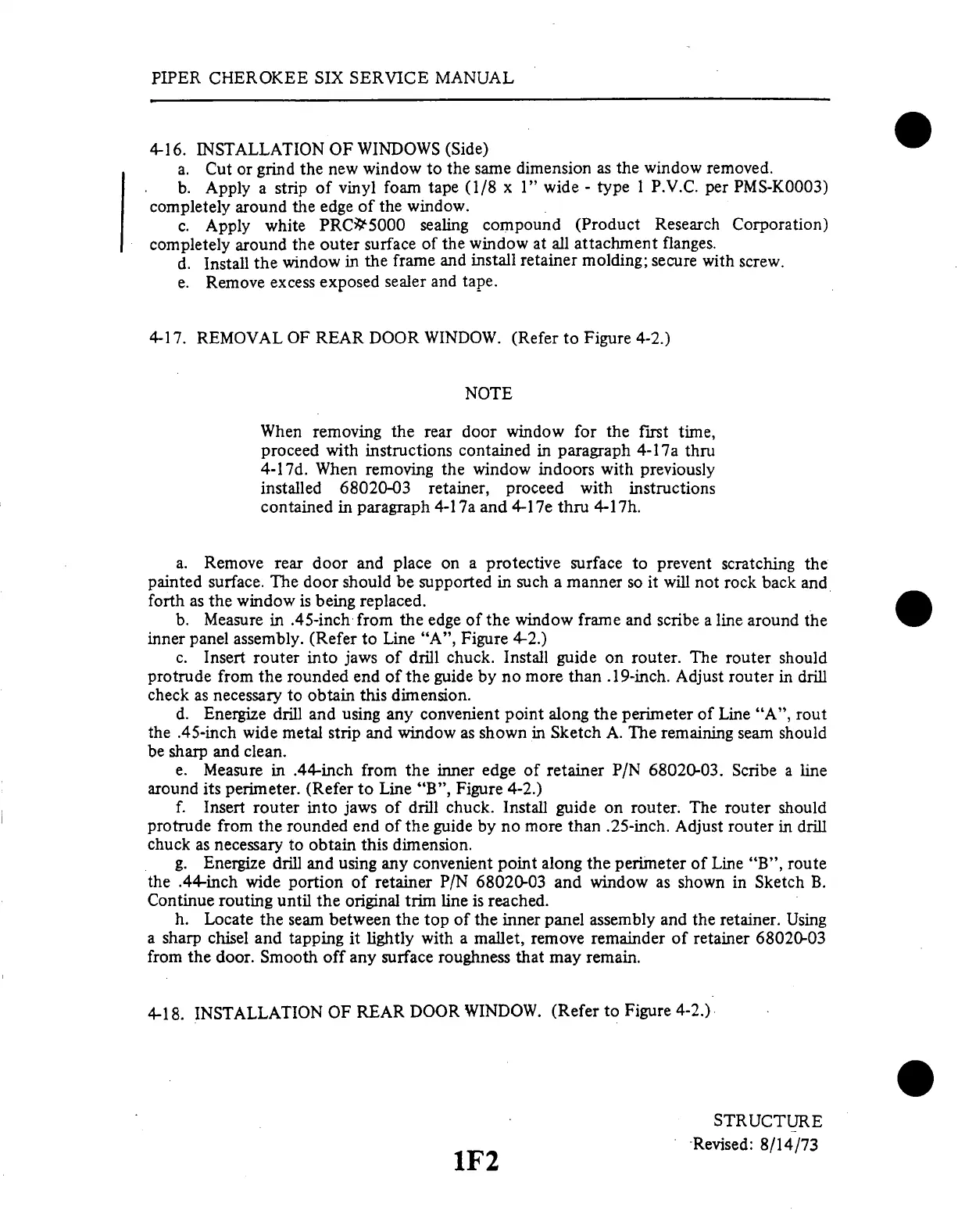4-17. REMOVAL OF REAR DOOR WINDOW. (Refer to Figure 4-2.)