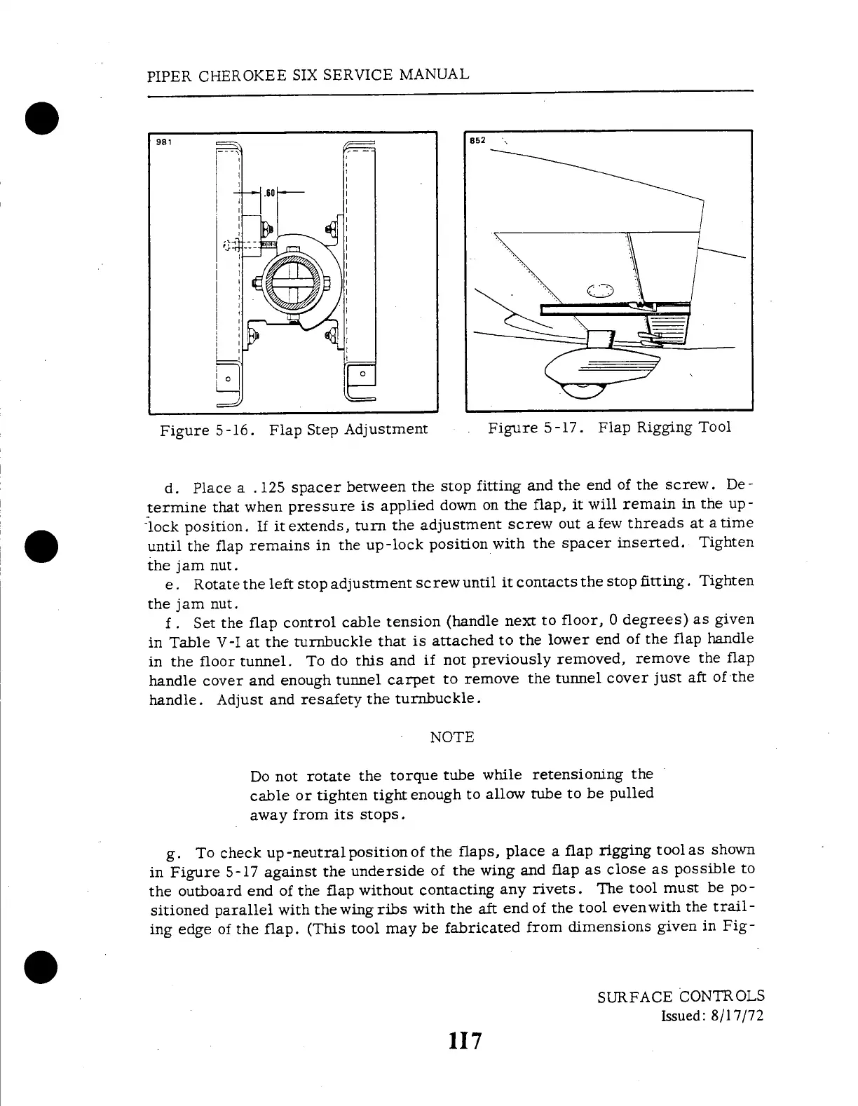 Piper Cherokee Six - Flap Rigging Tool; Flap Step Adjustment