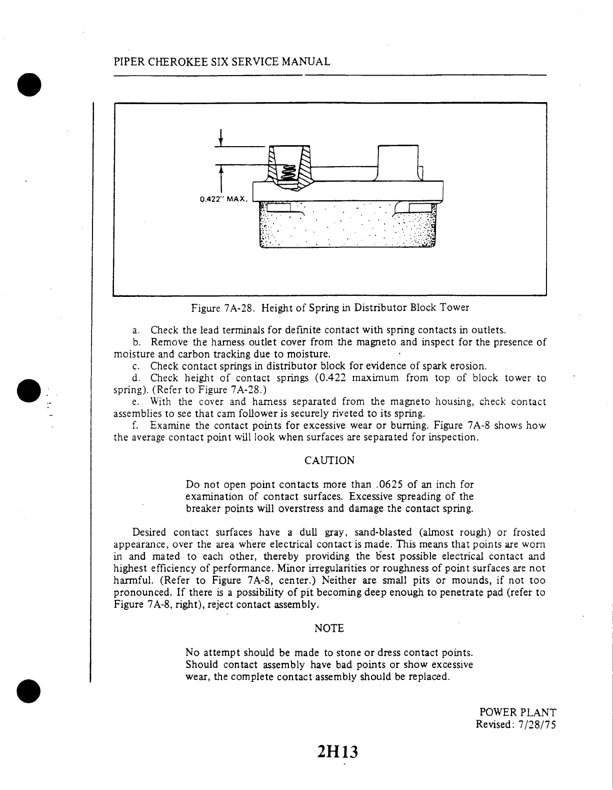 f. Examine the contact points for excessive wear or burning. Figure 7A-8 shows how