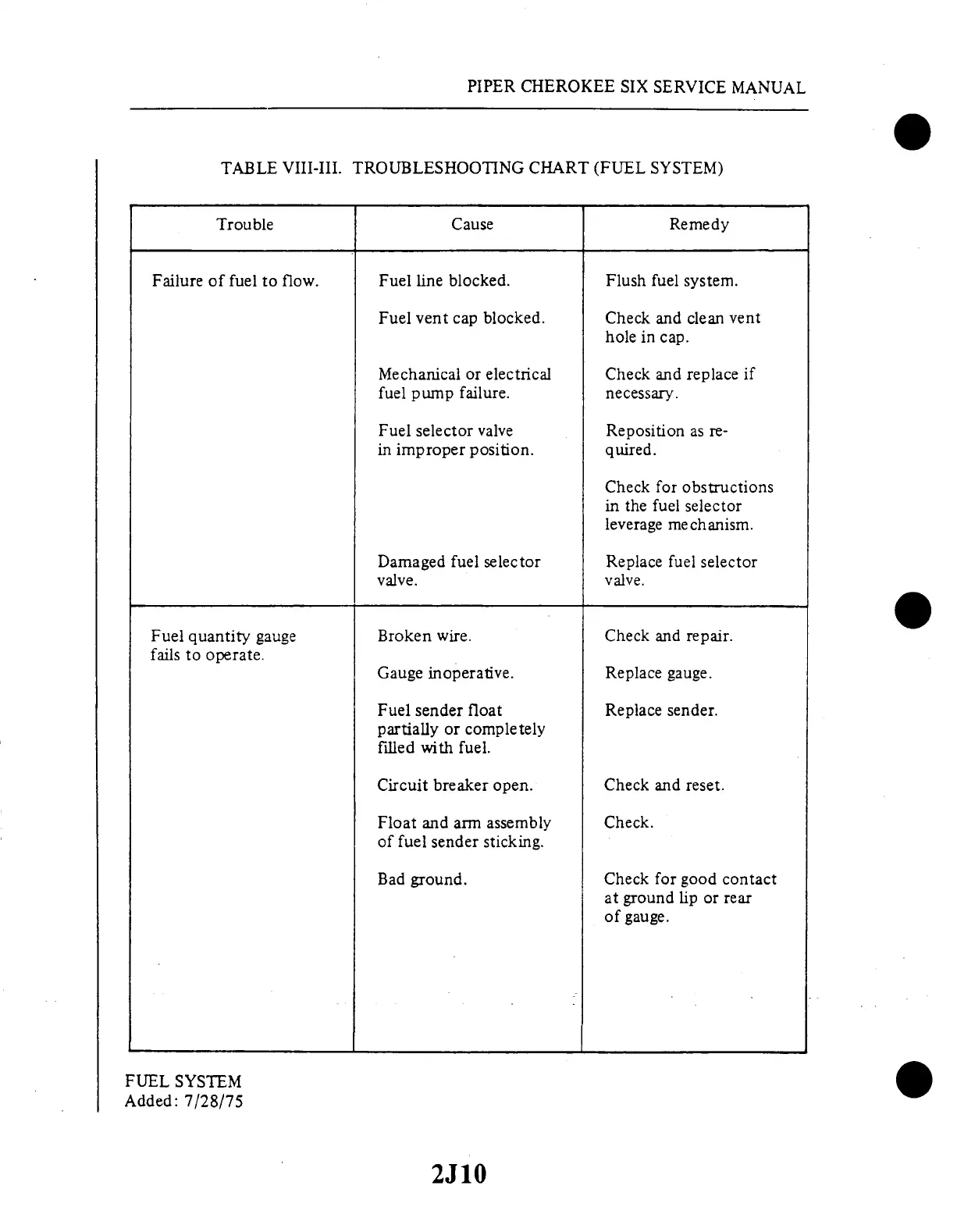 TABLE VIII-III. TROUBLESHOOTING CHART (FUEL SYSTEM)