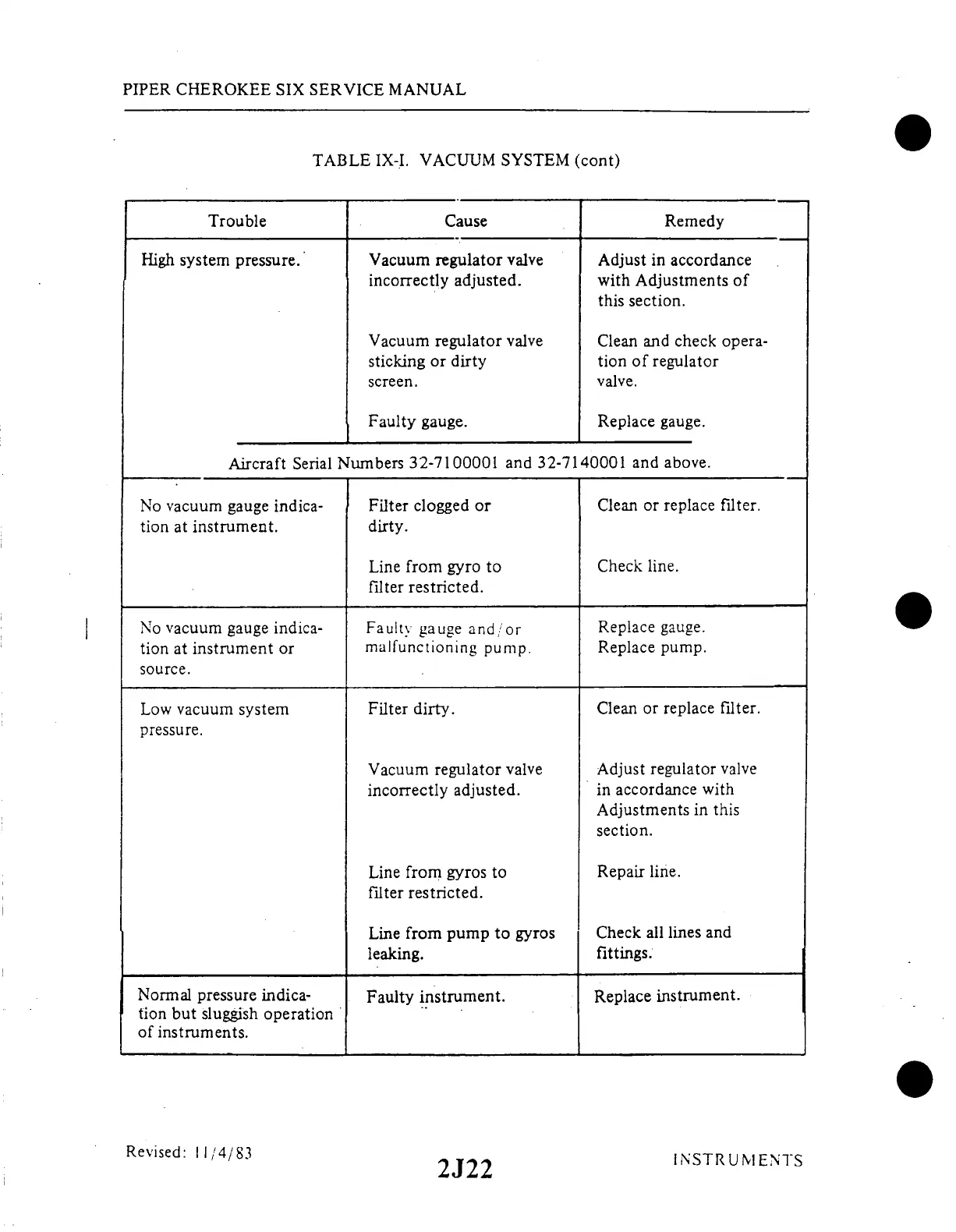 TABLE IX-I. VACUUM SYSTEM (cont)