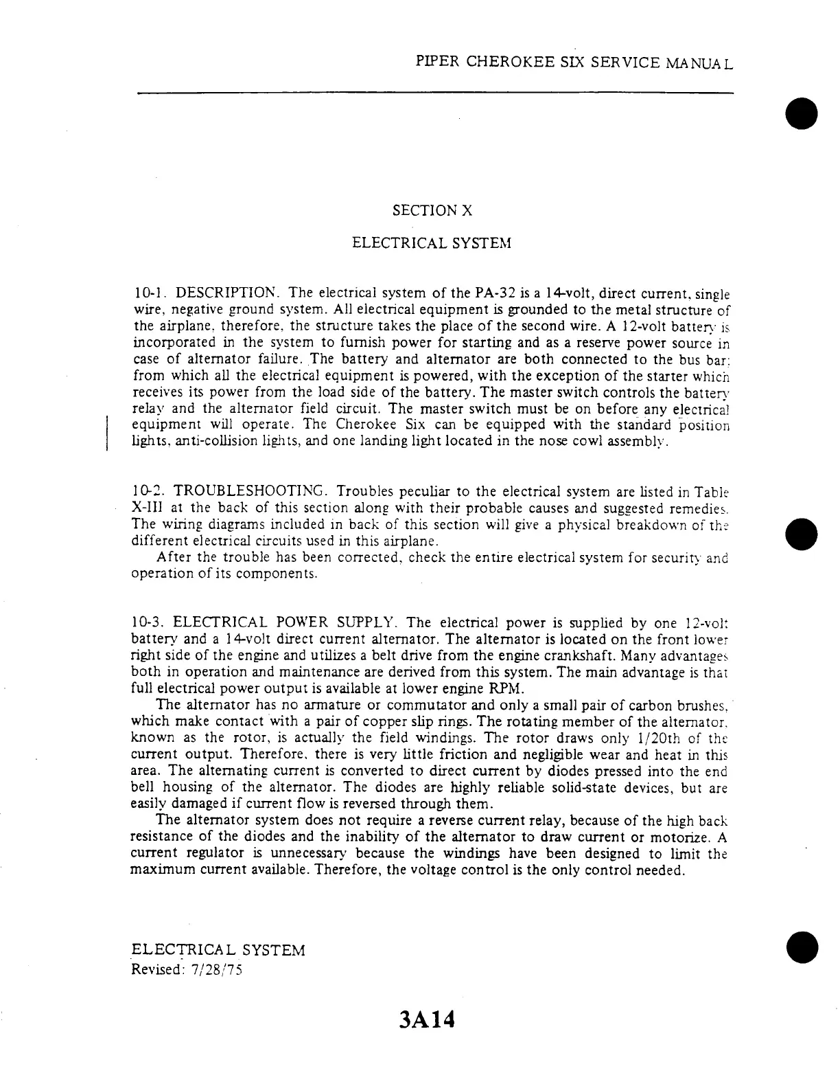 Piper Cherokee Six - Electrical Power Supply