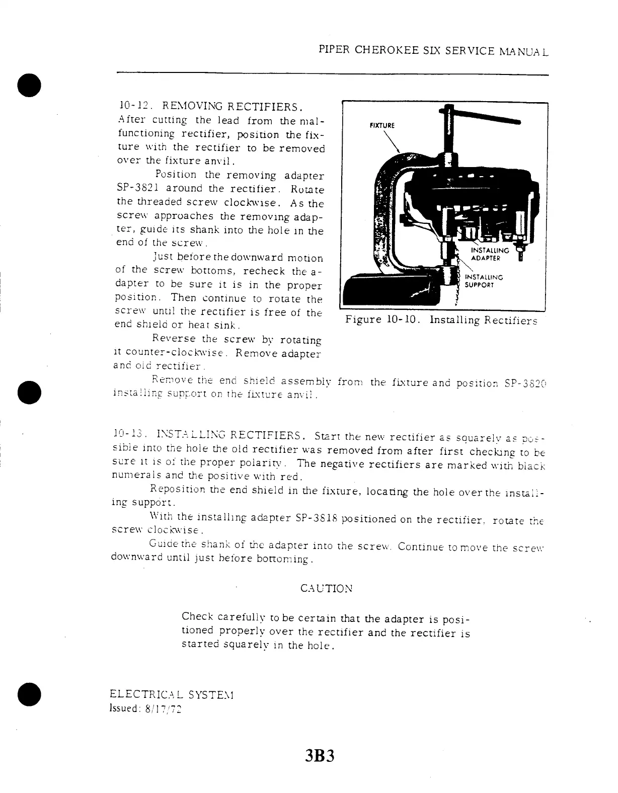 Piper Cherokee Six - Removing Rectifiers; Installing Rectifiers