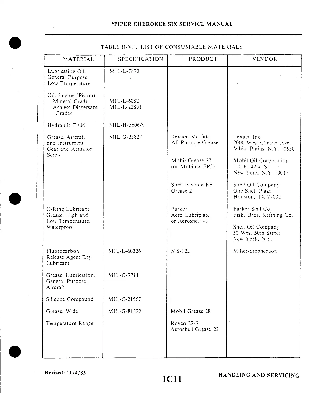 TABLE Il-VII. LIST OF CONSUMABLE MATERIALS