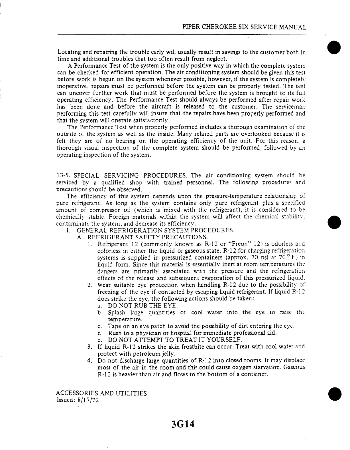 13-5. SPECIAL SERVICING PROCEDURES. The air conditioning system should be