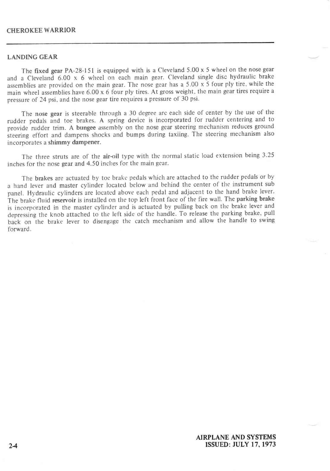 Piper cherokee WARRIOR - LANDING GEAR SYSTEM; Landing Gear Components and Operation