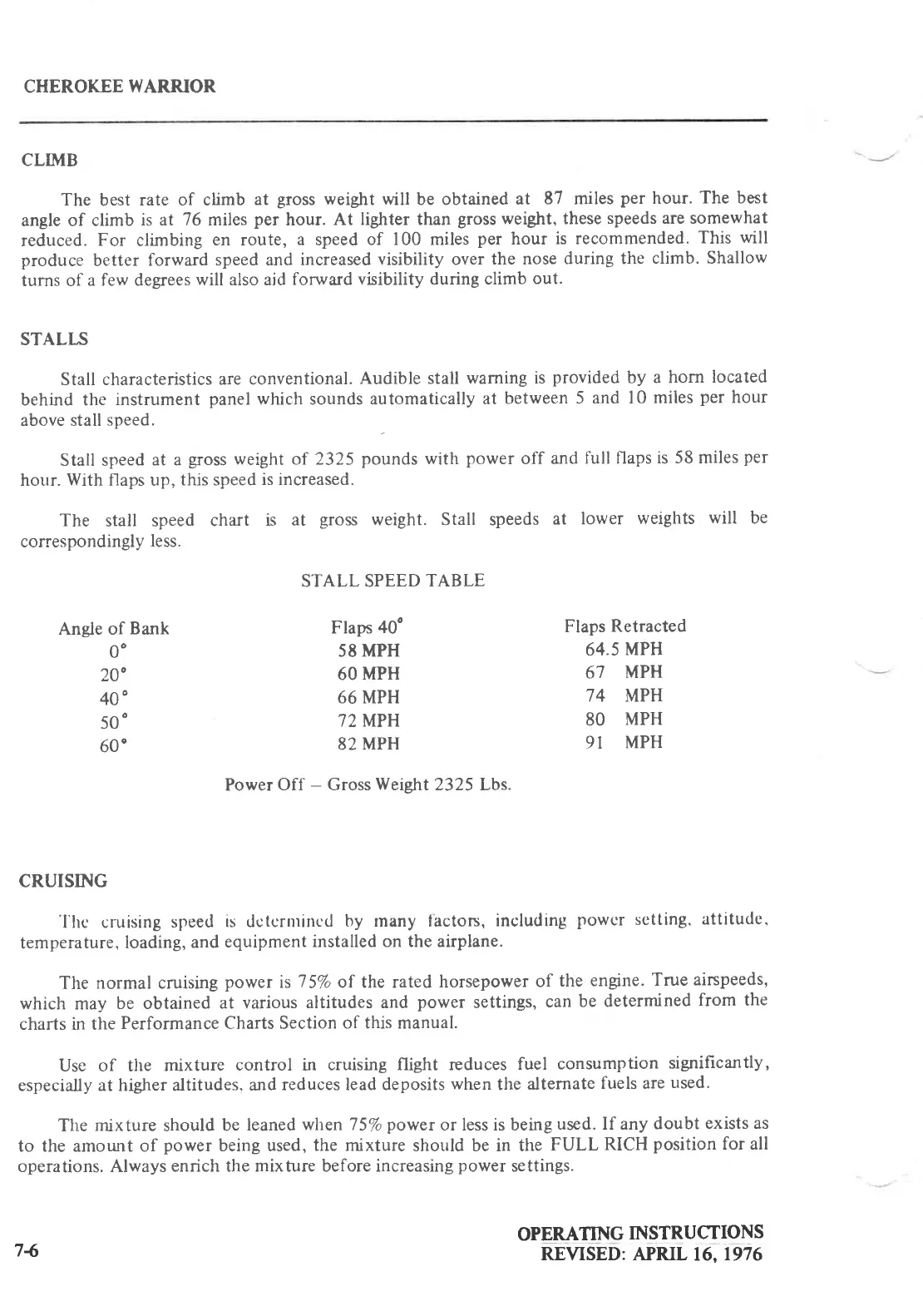 Piper cherokee WARRIOR - CLIMB AND STALL PROCEDURES; Climb Speeds and Stall Data