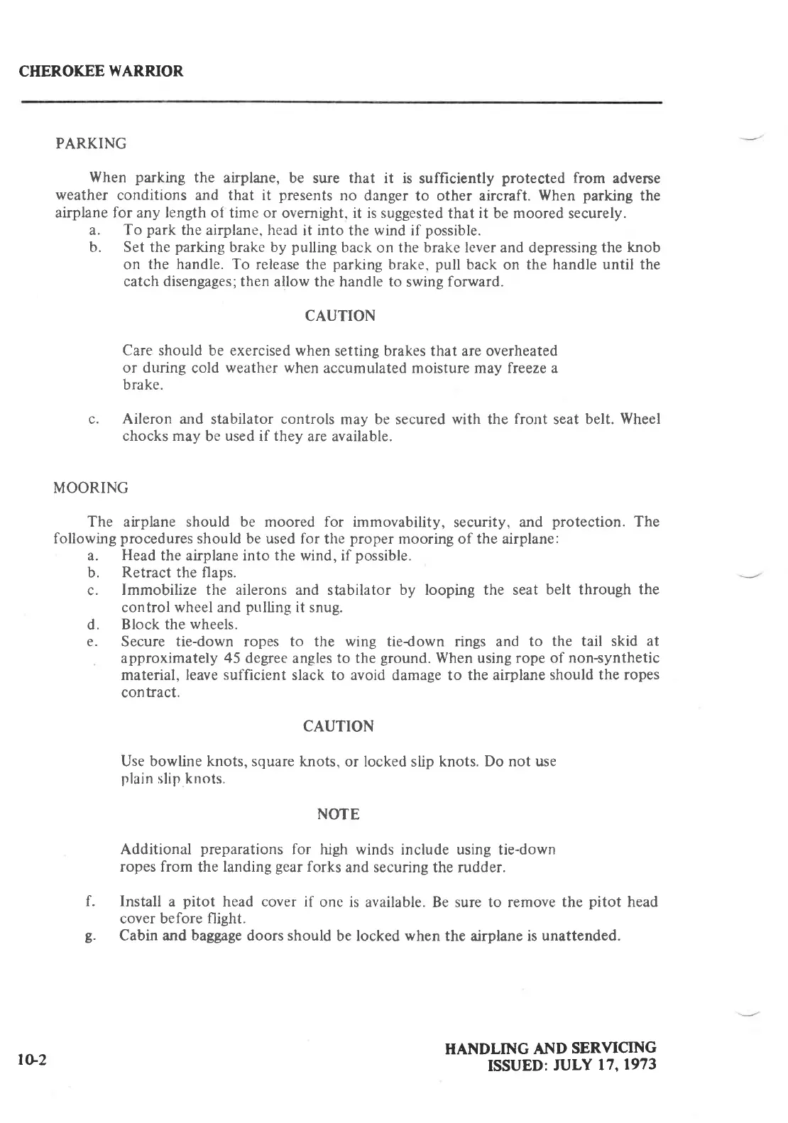 e. Secure tie-down ropes to the wing tiedown rings and to