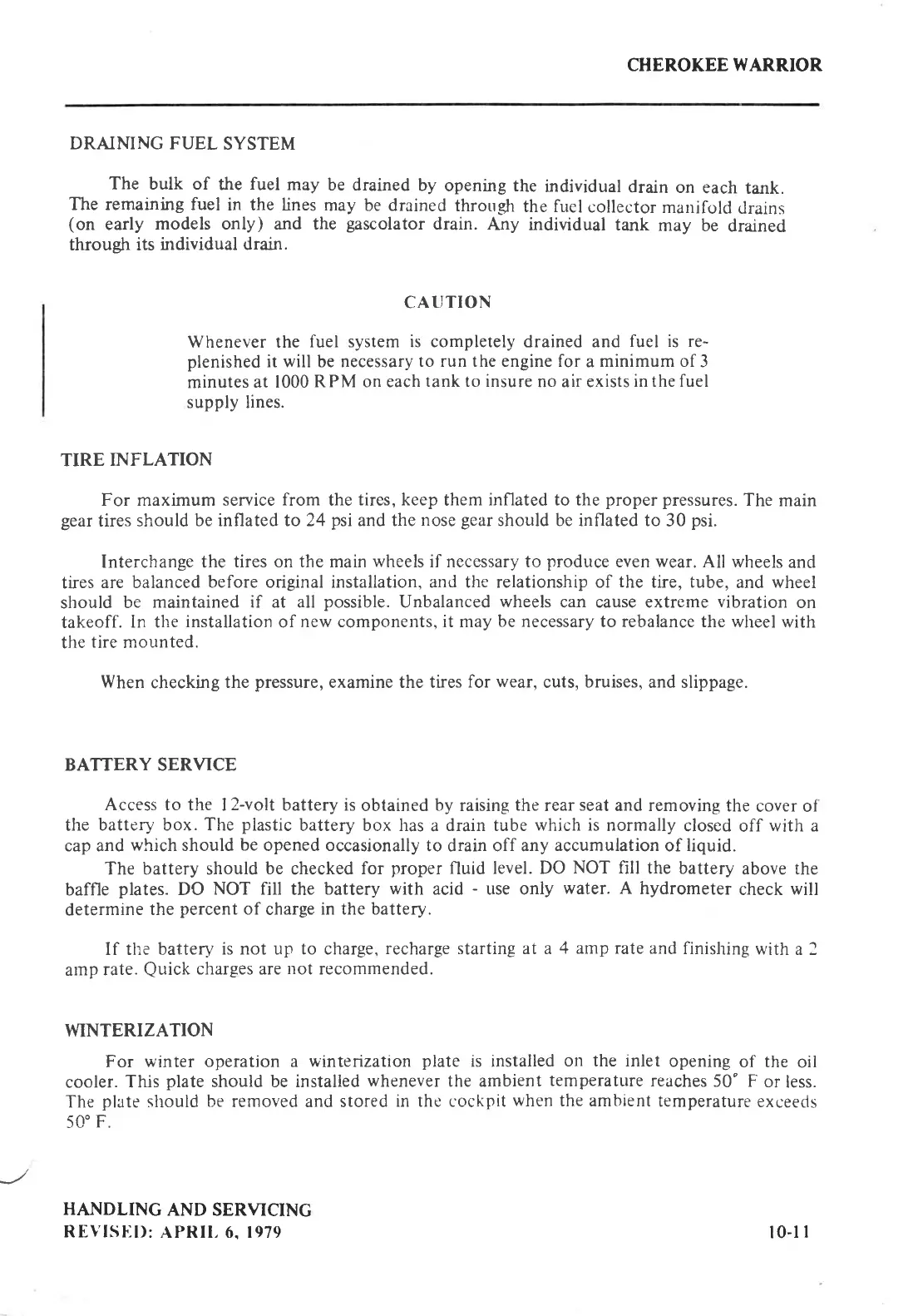 Piper cherokee WARRIOR - TIRE, BATTERY, AND WINTERIZATION; Tire Inflation and Battery Service