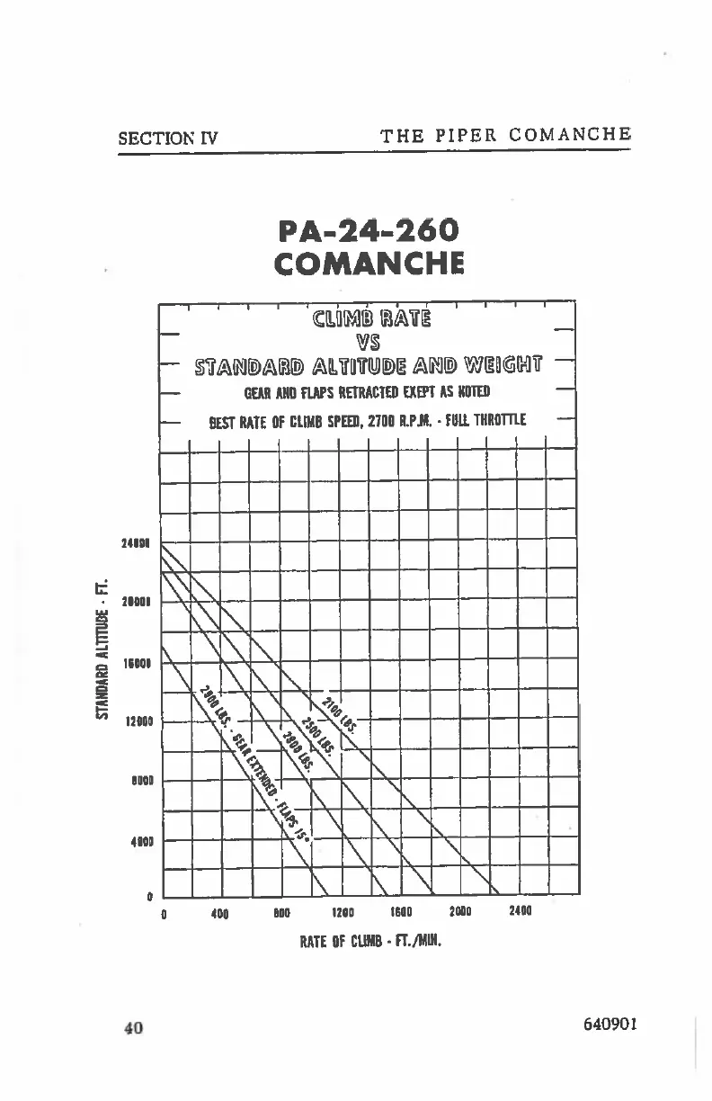 Piper COMANCHE 260 - Climb Rate vs Altitude and Weight Chart