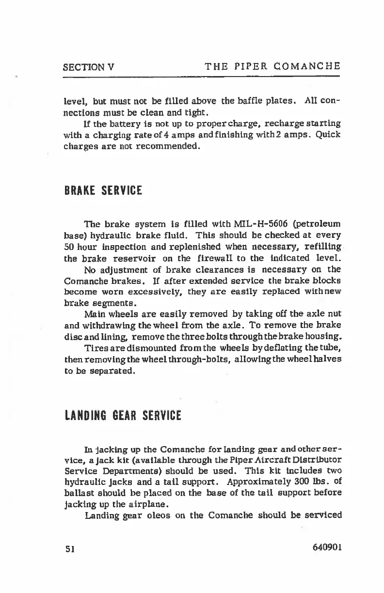 Piper COMANCHE 260 - Brake System Service; Landing Gear Service Procedures