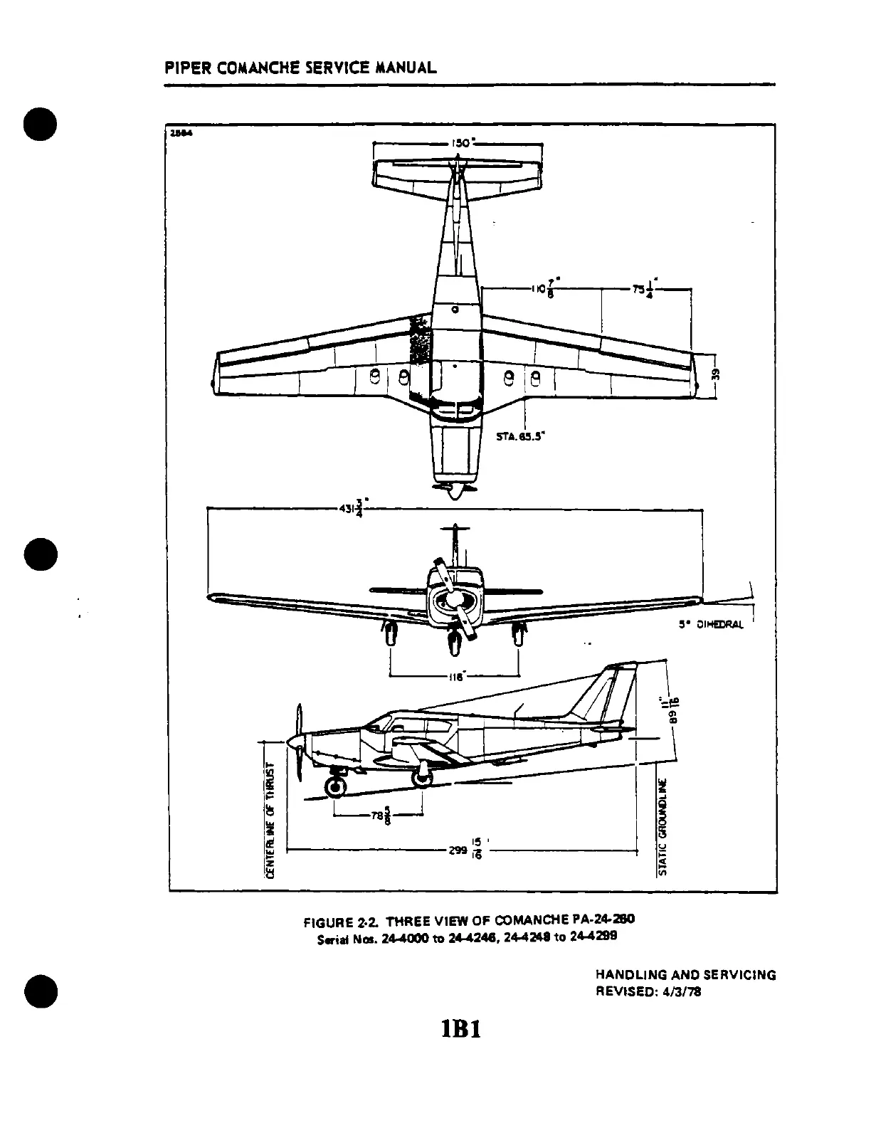 Piper Comanche PA-24 - FIGURE 2-2. THREE-VIEW OF COMANCHE - PA-24-260 (S;NS 24-4000 TO 24-4246, 24-4248 TO 24-4299)