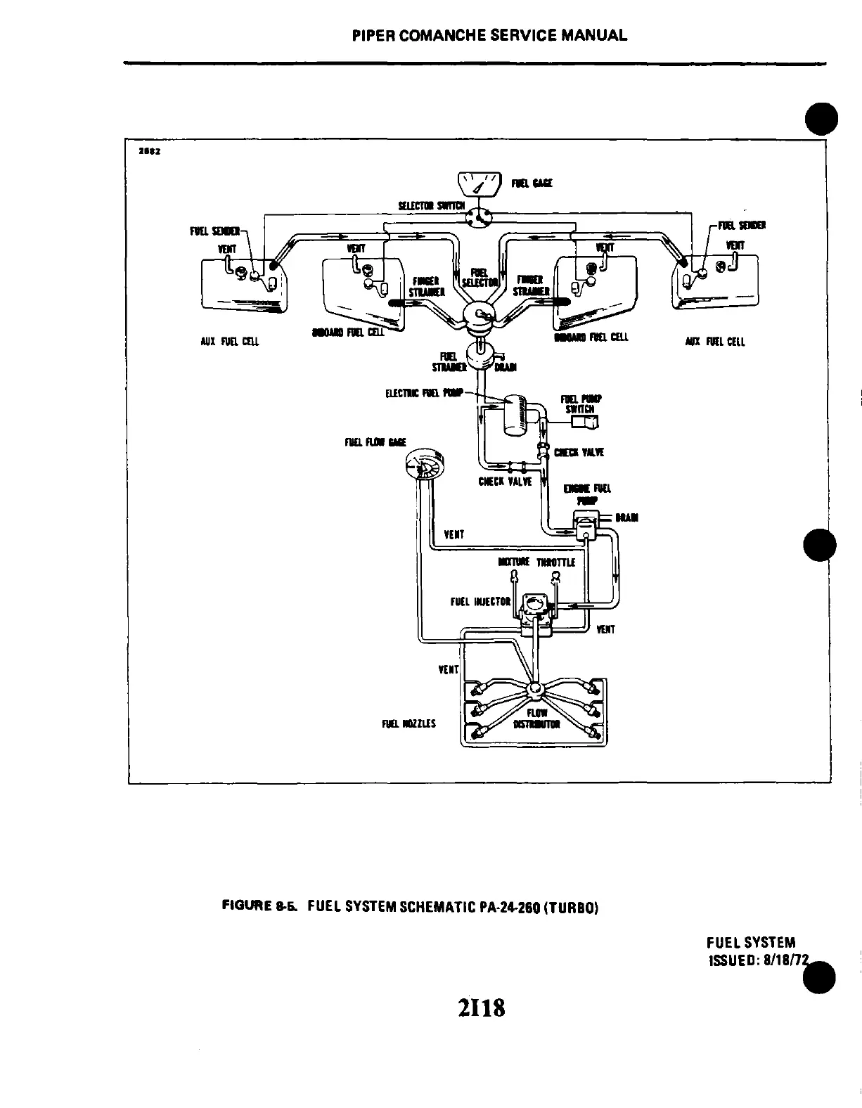 Piper Comanche PA-24 - FIGURE 8-5. FUEL SYSTEM SCHEMATIC - PA-24-260 TURBO