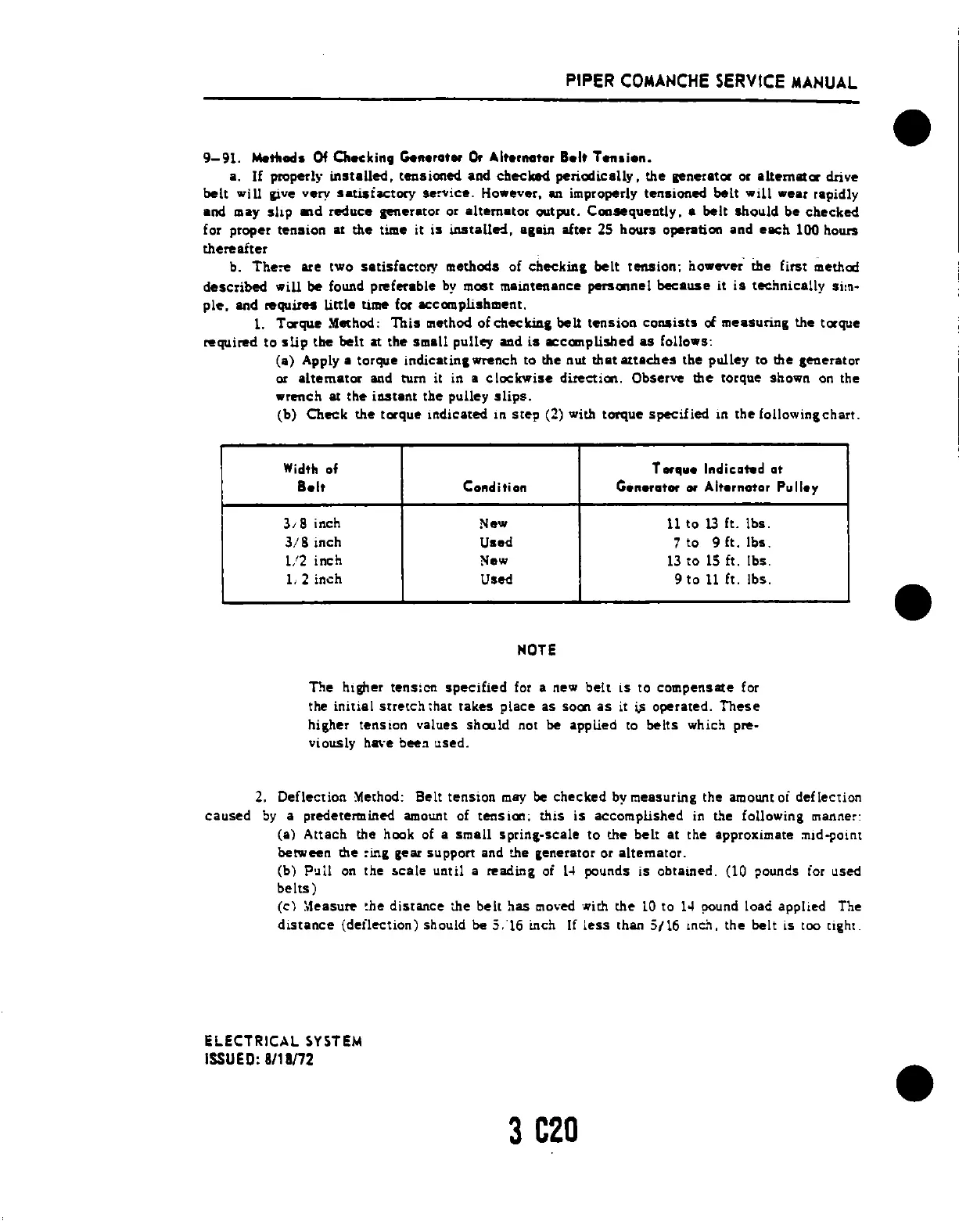 Piper Comanche PA-24 - 9-91. METHODS OF CHECKING GENERATOR OR ALTERNATOR BELT TENSION