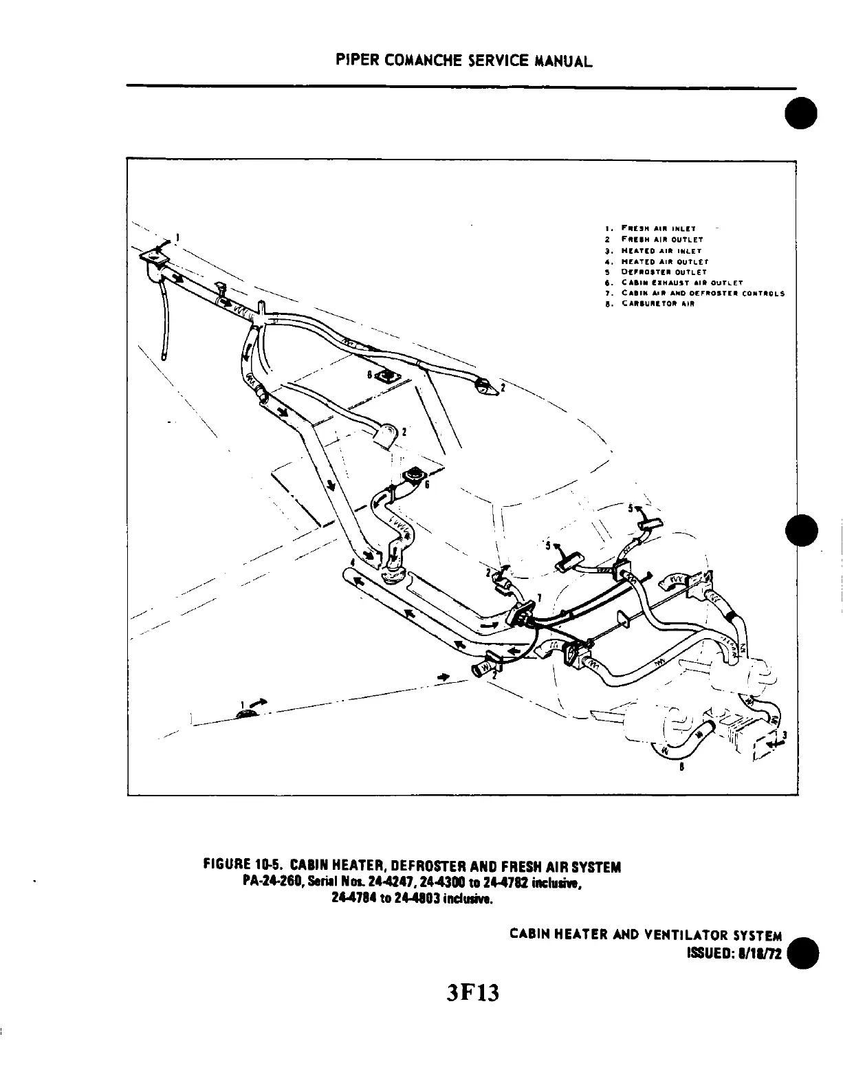 Piper Comanche PA-24 - FIGURE 10-5. CABIN HEATER, DEFROSTER AND FRESH AIR SYSTEM - PA-24-260 (S;N’S 24-4247, 24-4300 TO 24-4782 INCL.; 24-4784 TO 24-4803 INCL.)