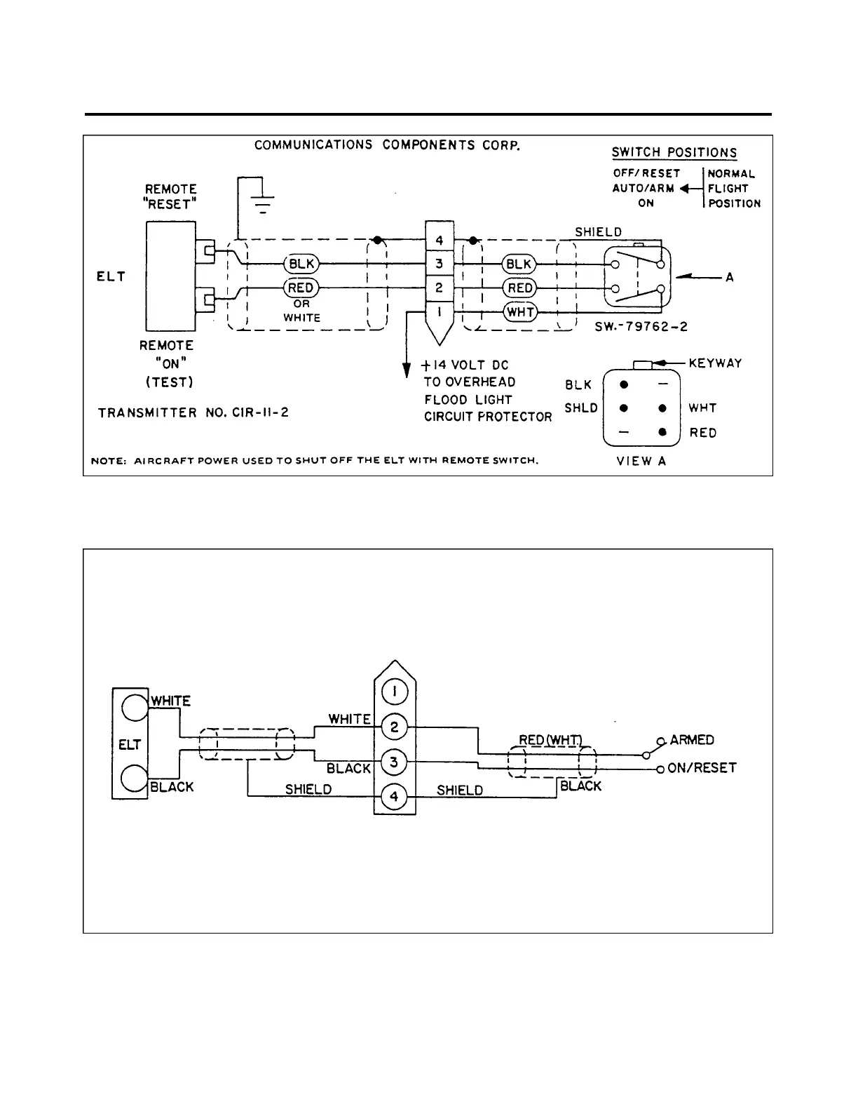 Piper Dakota - Communications Components ELT Schematic; Emergency Locator Transmitter Schematic