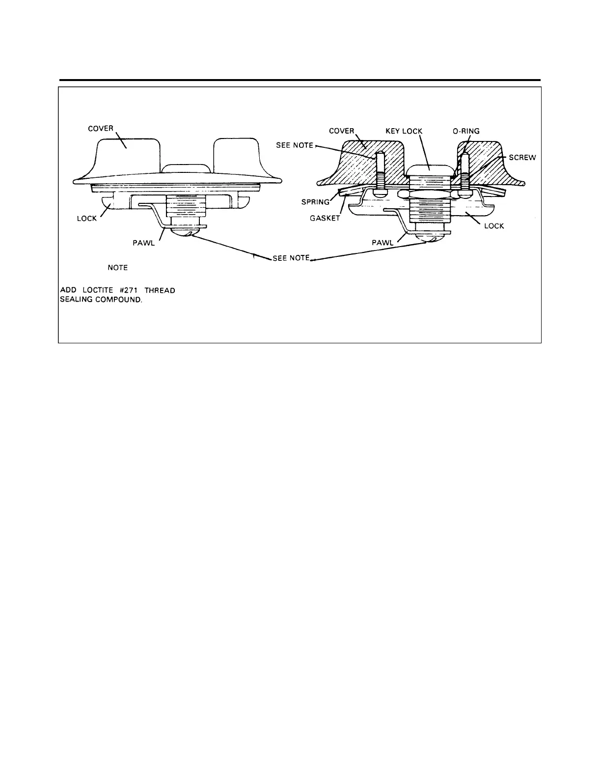 5. Reinstall two screws on back of fuel cap. Use Loctite 271 on threads.