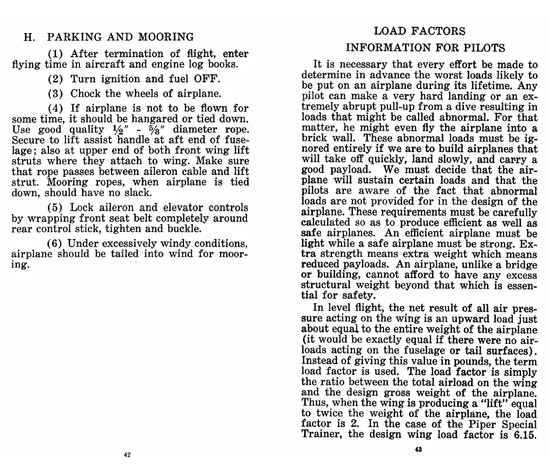 Piper J3C-65 - Parking and Mooring; Load Factors Information for Pilots; Understanding Load Factors