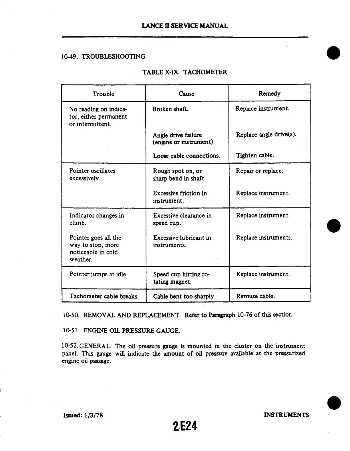 TABLE X-IX. TACHOMETER